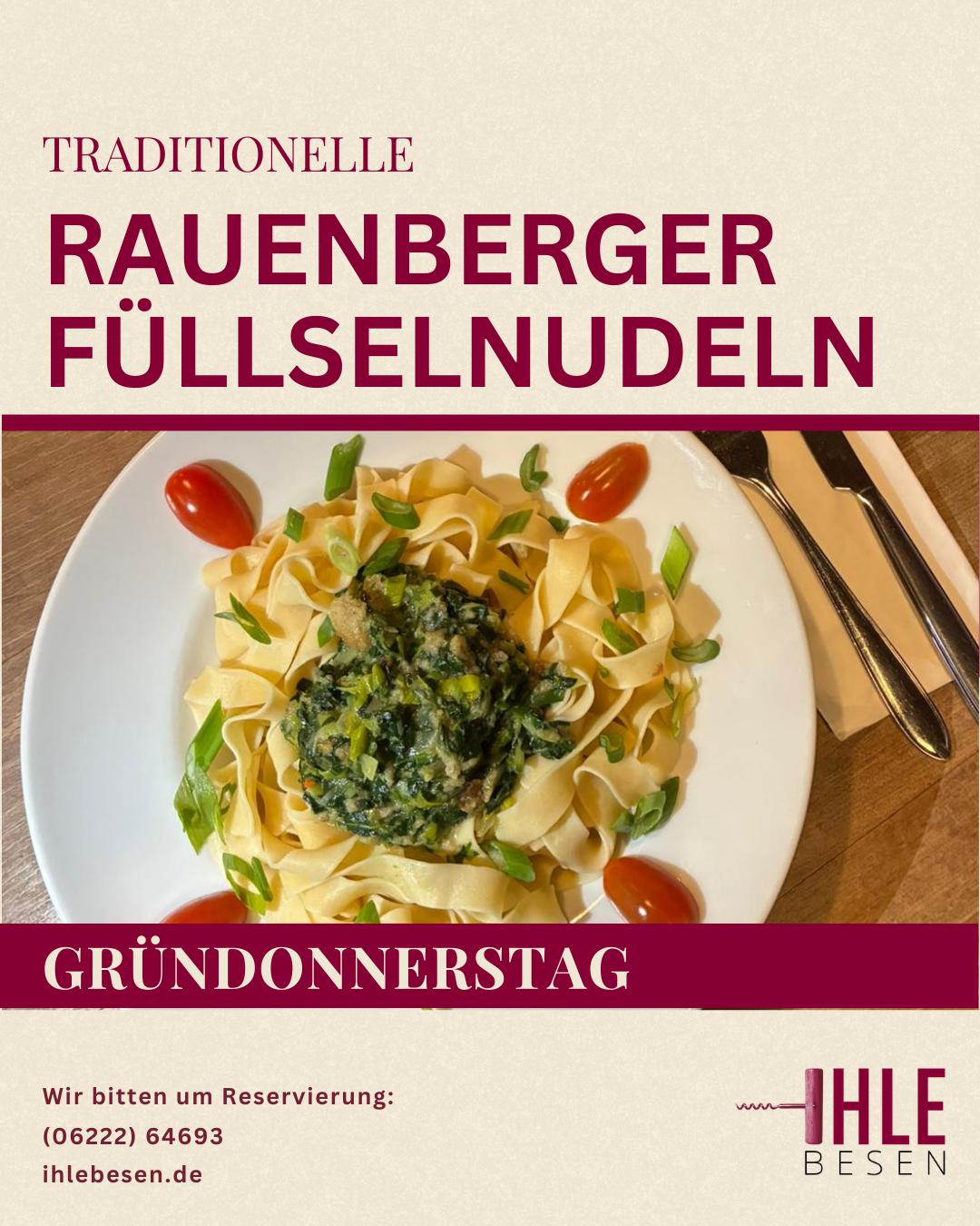Gründonnerstag 2. April: traditonelles Fastenessen – Rauenberger Füllselnudel im Ihle Besen – ab 17:00 Uhr geöffnet