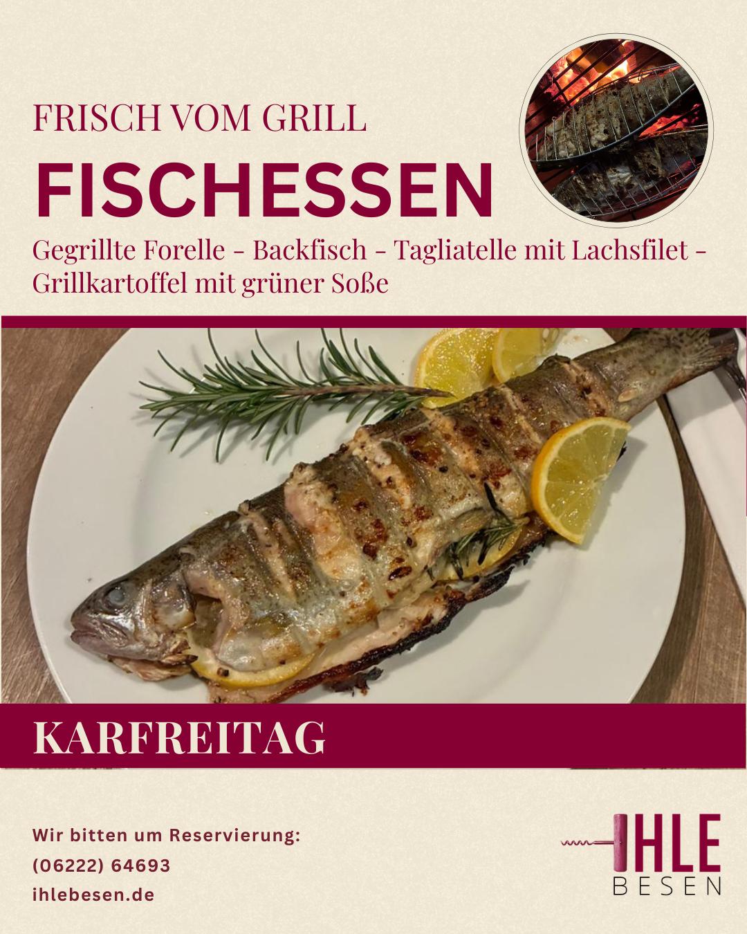 Karfreitag 3. April: Ihle Besen von 11:30 - 22 Uhr geöffnet – Fischessen – Forelle vom Holzofengrill und mehr.
